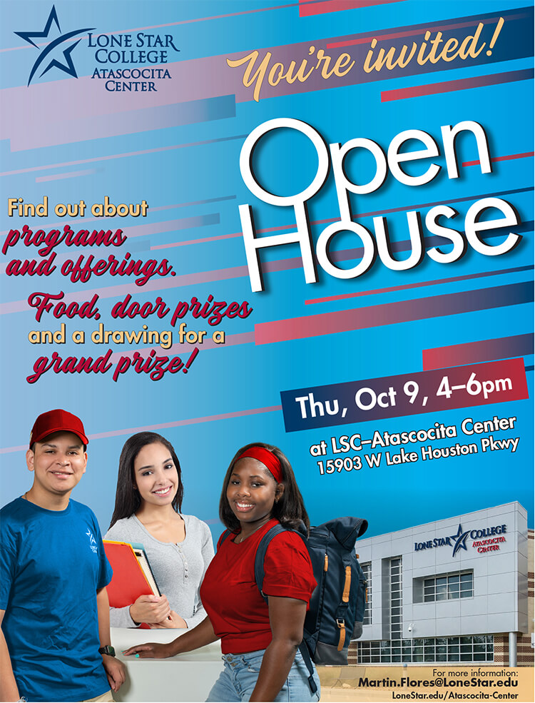 Our campus is having an open house to promote classes, registration, and student services that are offered. There will be departments from the campus and Lone Star College - Kingwood on site to answer your questions.